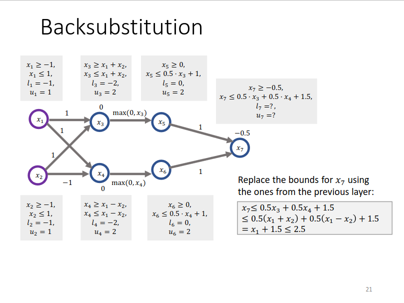 When computing bounds, backsubstitution is utilized for tighter bound: