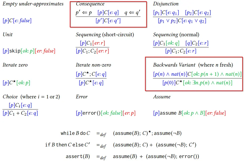 反过来,给定后置条件,满足 IL 三元组的前置条件不一定存在。要进行后向推理,文中的一种思路是先使用标准的后向谓词变换计算出前置条件,然后再前向计算(新的)后置条件。