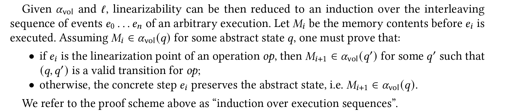 In this case, linearizability can be proved by an induction over the execution . See below: