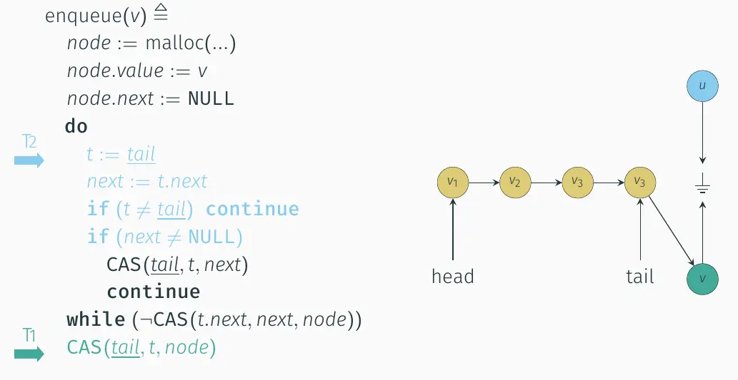 经典的无阻塞队列实现,通过线程间的“帮助”来完成尾指针tail的更新。 Related Non-blocking Algorithm Non-blocking Michael-Scott queue algorithm | PDF